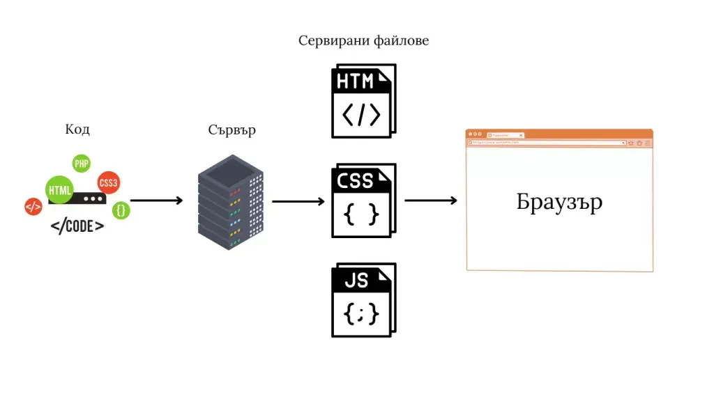 Генериране на HTML: Сървърът генерира HTML документ, който браузърът може да разбере и изобрази. Този документ може да включва CSS и JavaScript за по-добра функционалност и визуален ефект.