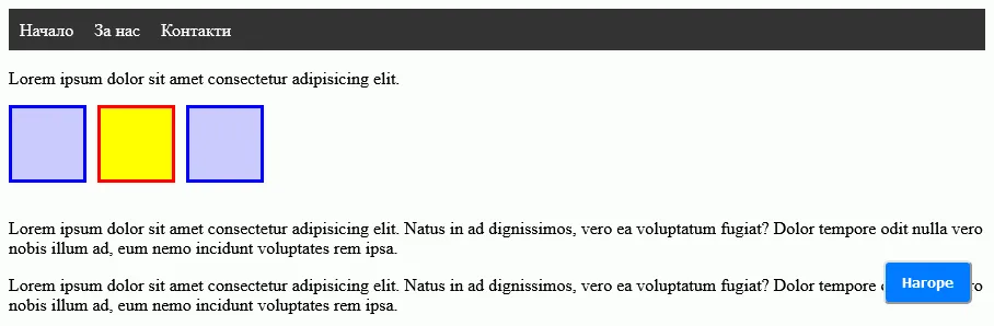 Позициониране на бутон “Нагоре” в долния десен ъгъл на страницата#