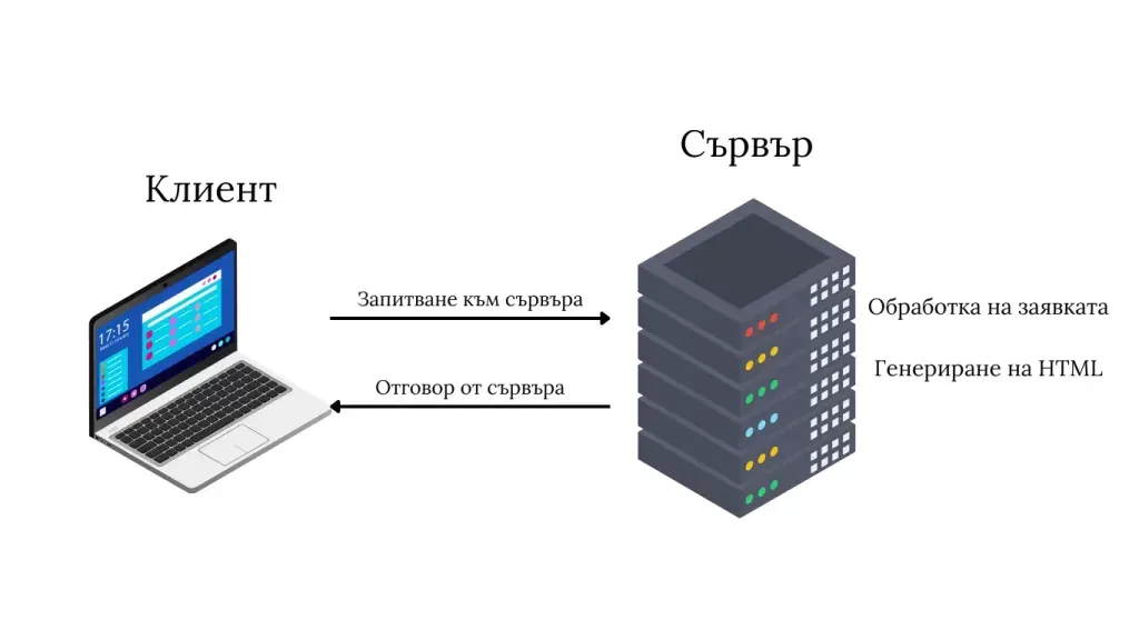Генериране на HTML: Сървърът генерира HTML документ, който браузърът може да разбере и изобрази. Този документ може да включва CSS и JavaScript за по-добра функционалност и визуален ефект.